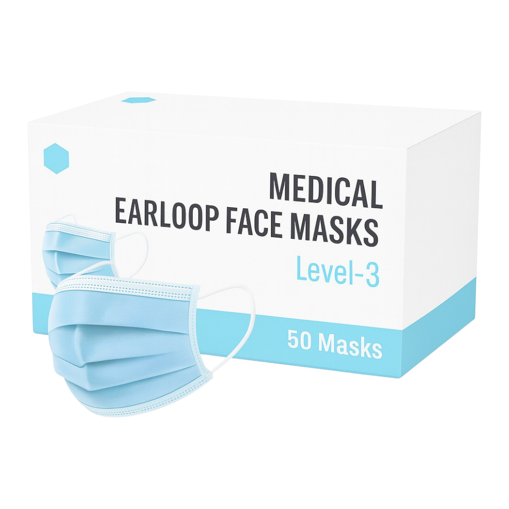 • Type: ASTM Level 3 Medical Earloop Face Masks